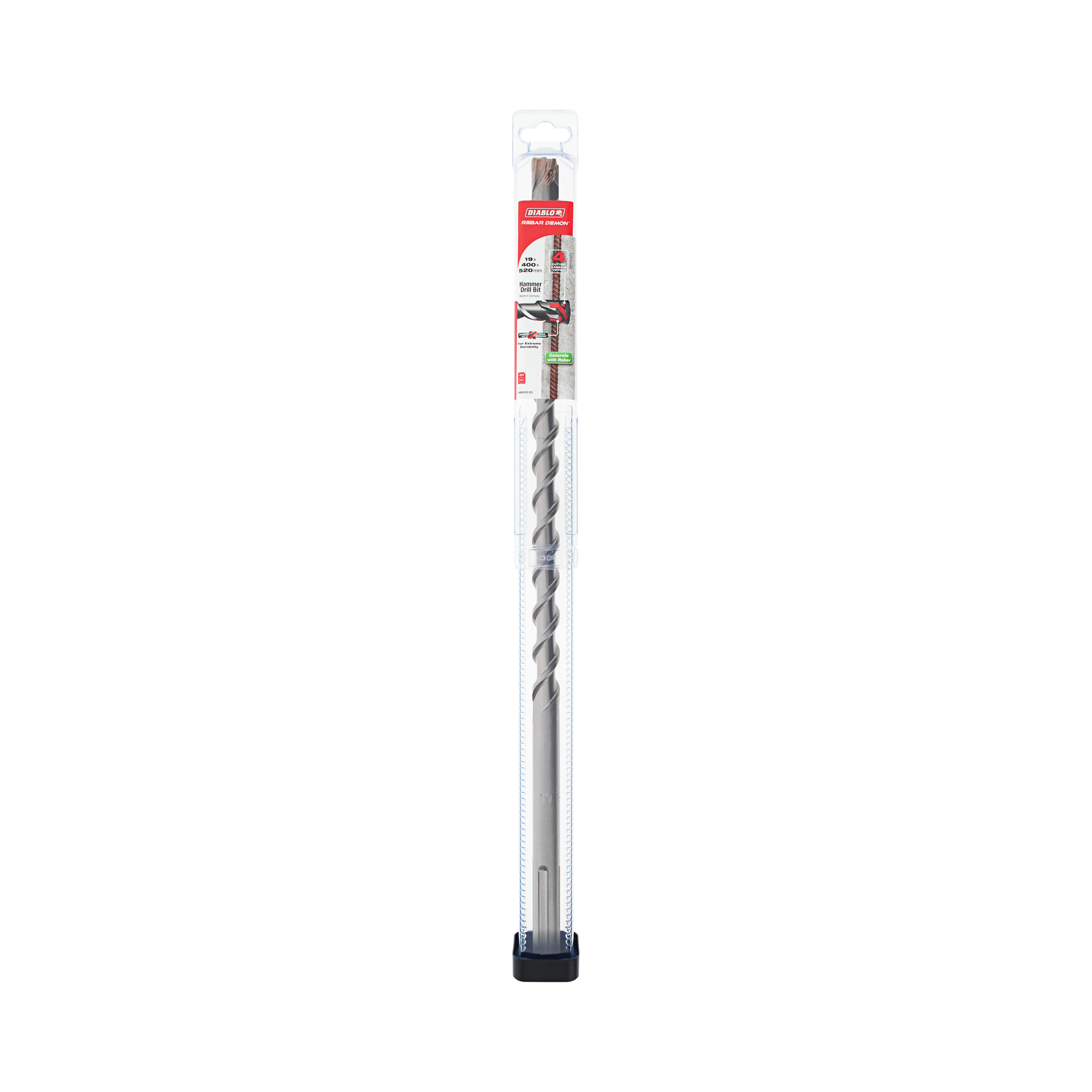 - Diablo made Dura-Carbide™ features up to 2X more carbide that withstands up to 1800°F of intense heat to combat rebar hits versus standard bits that fail at 800°F